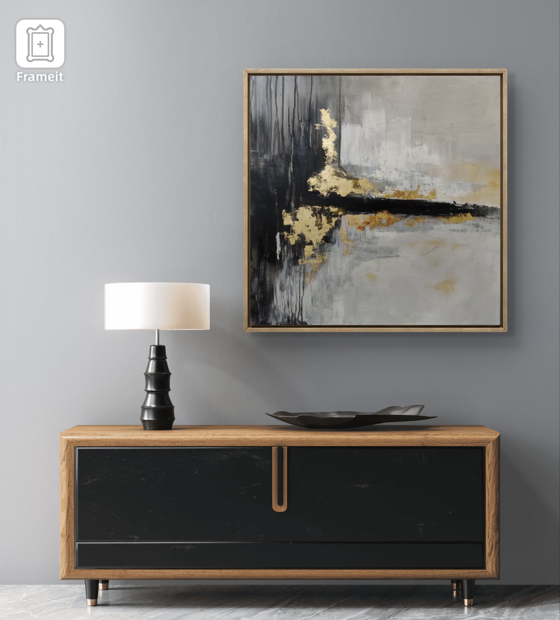 - Frame: Golden frame with white mount